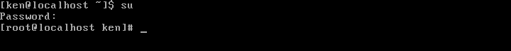 「su」コマンドを実行すると、rootのパスワードを求められるので、パスワードを入力するとrootコンソールに変身できる。なおパスワード入力時は文字列は表示されないが、入力はされているのでそのままパスワードを入力すればよい。