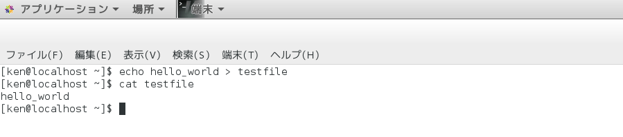 - 「echo」で表示した文字列を「testfile」にリダイレクトしてみよう。