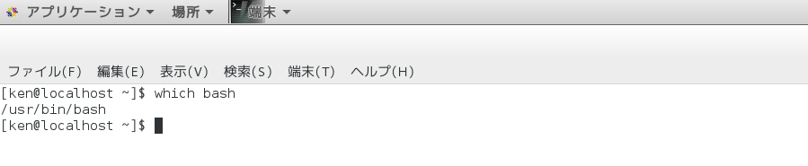 - 「bash」のプログラムファイルが何処にあるのか「which」コマンドで確認してみよう。