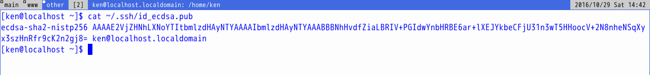 $ cat id_ecdsa.pub >> ~/.ssh/authorized_keys