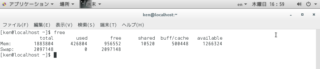 空領域が少なく感じるかもしれないがbuff/cacheで容量を活用されているからである。Linuxは基本的に使われていないメモリは積極的にbuff/cacheへ割り当てるようになっている。