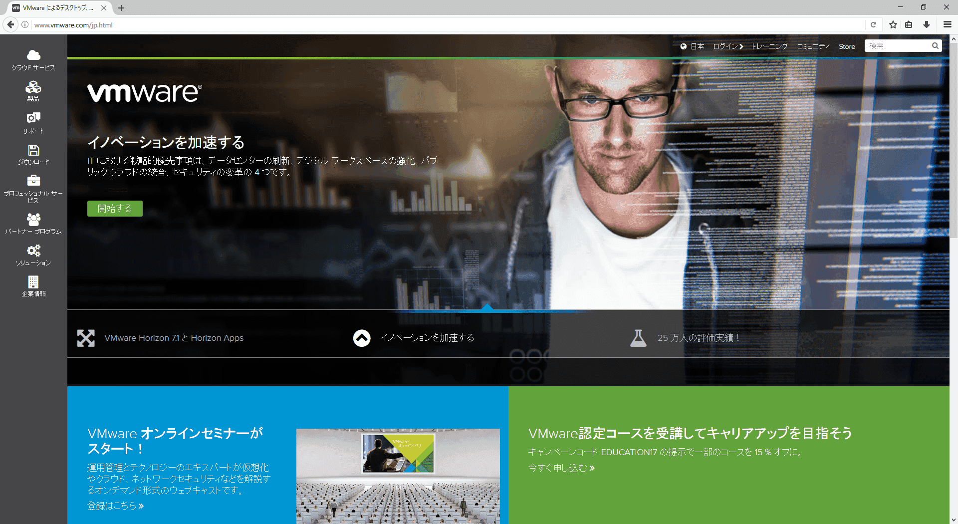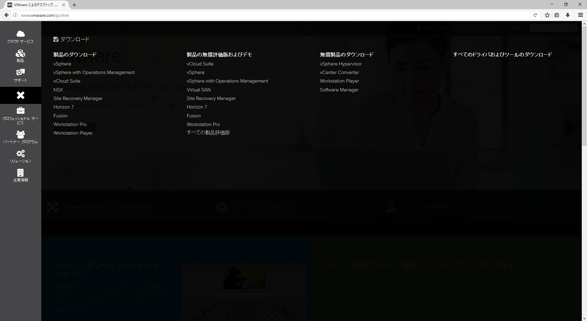 下記のURLがVMwareのホームページとなる。