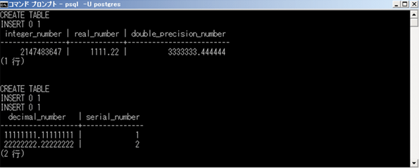 データ型に対応して、正しく値が保存されている。ここで、注目して欲しいのはserial_numberの値が自動的に増えていることだ。