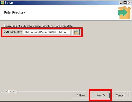 Data Directory画面が表示されたら、データベースのデータをインストールするディレクトリをData Directoryに設定する。デフォルトのディレクトリでもよいし、独自に設定することも可能だ。