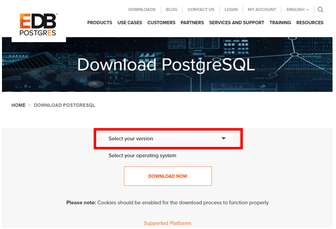 Download PostgreSQL画面が表示されたら、Select your versionをクリックする。