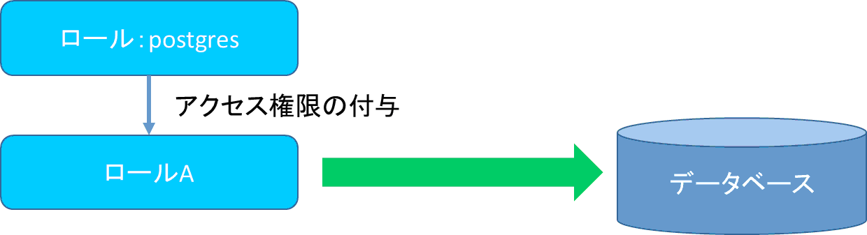 しかし、データベースを作成して所有者となったpostgresからアクセス権限がAに与えられると、Aはデータベースへのアクセスが可能になる。