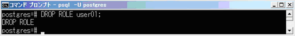 以下の例はコマンドを実行してuser01というロールを削除しているところだ。