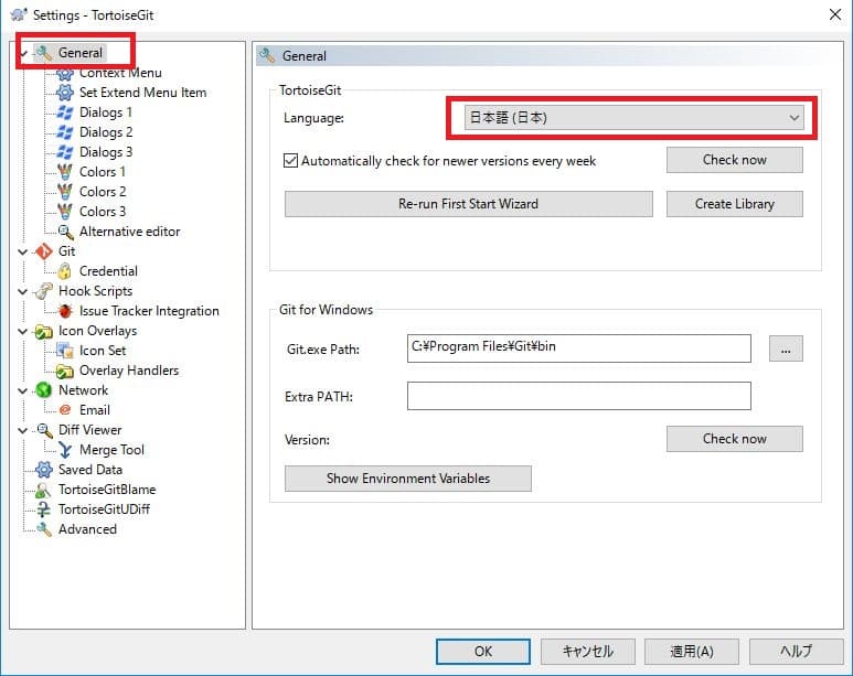 Tortoise Gitを日本語化する言語パックをインストールしよう。