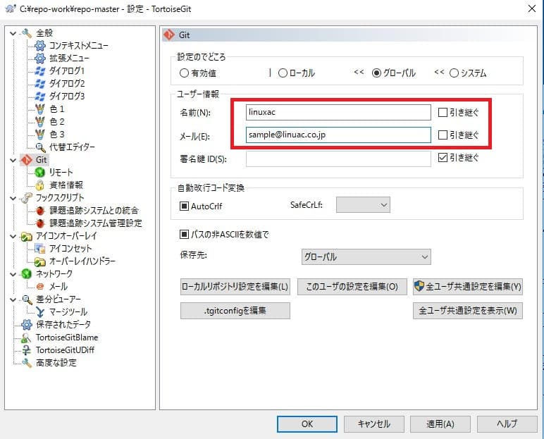 当方の環境としては、OSはWinXP、『TortoiseGit』のバージョンは