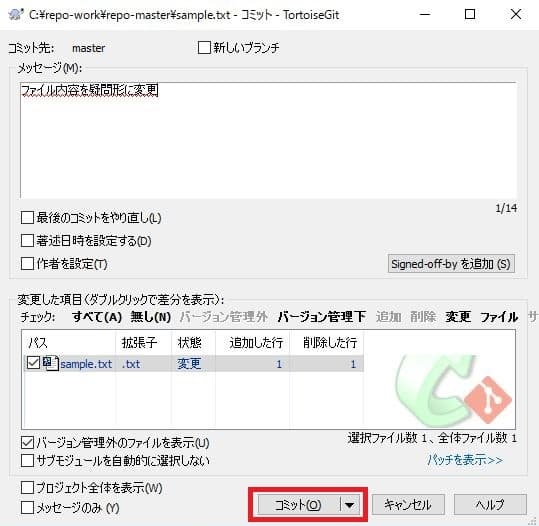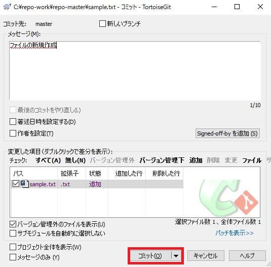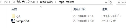 ローカルリポジトリ(C:\repo-work\repo-master)にファイル「sample.txt」を追加してみよう。