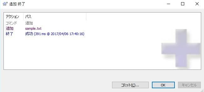 ファイルの追加状況が表示され、選択したファイルがローカルリポジトリに追加される。