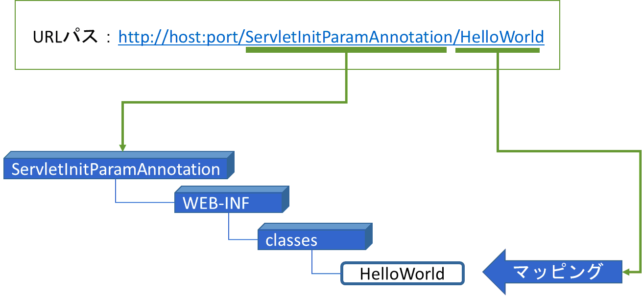 コンテキストルートはServletInitParamAnnotationなので、クライアントからのパスは以下のようになる。