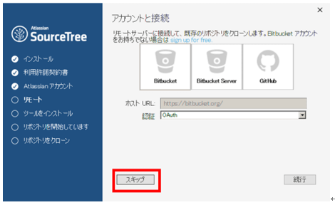 既にリモート・サーバを持っていれば、表示された3つの中から選ぶ。ここでは、リモート・サーバのリポジトリを独自に作るのでスキップするだけでOKだ。