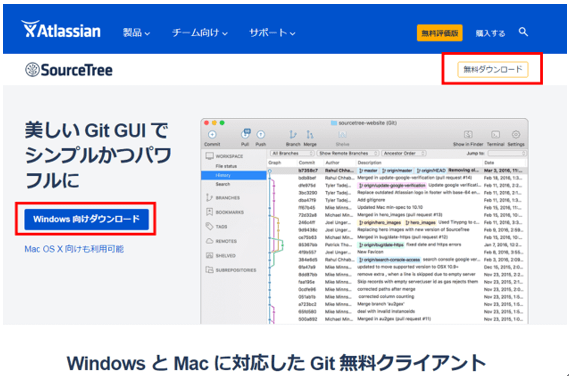 まず最初行なうのは、SouceTreeの公式サイト(URL: https://ja.atlassian.com/software/sourcetree)よりインストーラーをダウンロードすることだ。