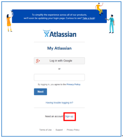 インストールを行うためには、Atlassianにアカウントを登録する必要がある。ここではその手順を説明する。