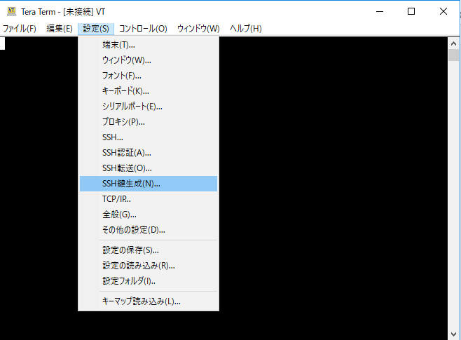 ここまでで簡単なTeratermの使い方はOKだ。試しに公開鍵と秘密鍵を作ってみよう。
