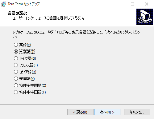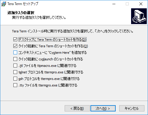 デスクトップにアイコンが作成されるはずだ。アイコンをダブルクリックすると「TeraTerm」が起動する。
