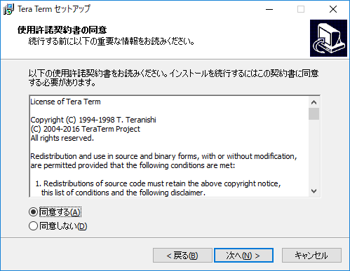 ライセンスに関しての情報だ。「同意する」を選択して「次へ」をクリックする。