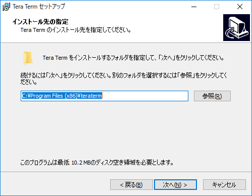 インストールするファイルをどこに設置するかを聞いてくるが、大概はそのままで問題ない。「次へ」をクリックしよう。
