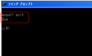 【8】MySQLを終了します。「exit」と入力し、「Enterキー」を押します。