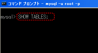 【10】「SHOW TABLES;」と入力し、「Enterキー」を押します。