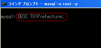 【16】「DESC T01Prefecture;」と入力し、「Enterキー」を押します。