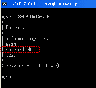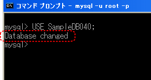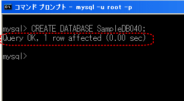 【4】「CREATE DATABASE SampleDB040;」と入力し、「Enterキー」を押します。