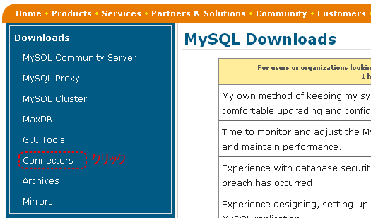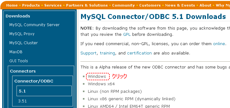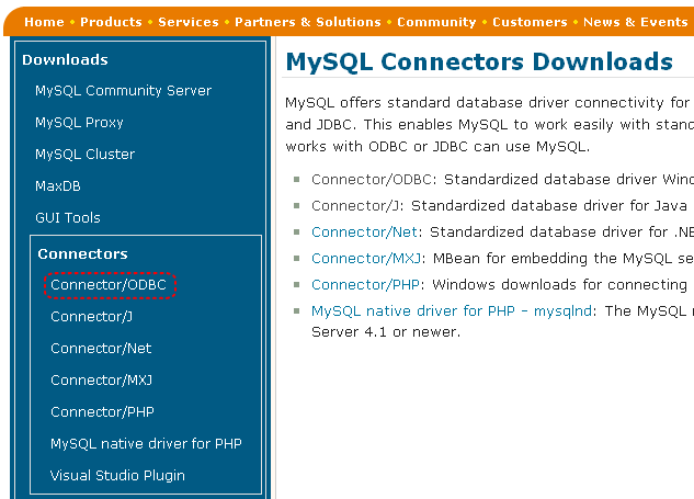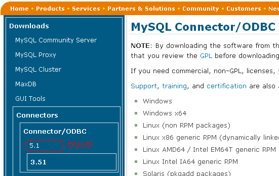 しかし残念ながらMySQL用のドライバはありません。そこで今回はODBCドライバを入手する手順を解説します。MySQL用のODBCドライバはMySQLのサイトからダウンロードすることができます。