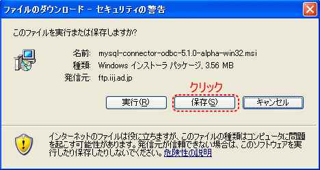 【7】ダウンロードのダイアログボックスが表示されたら、「保存」ボタンをクリックします。