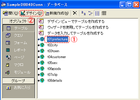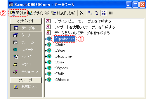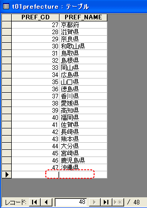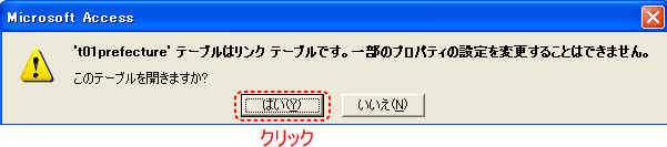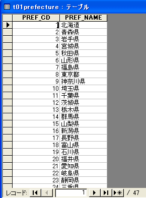 【4】「t01prefecture」を選択し、「開く」をクリックします。