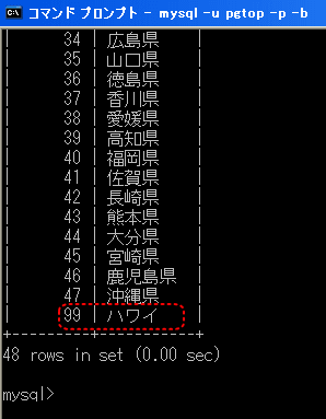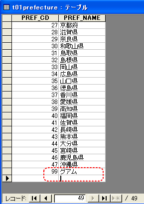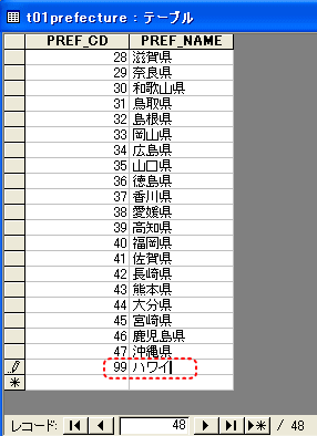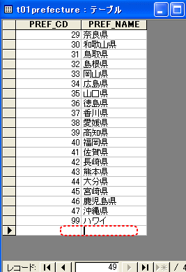 【6】最後のレコードの下に、「99 ハワイ」と入力します。