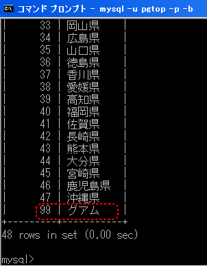 【5】「t01prefecture」テーブルが開きました。これはMySQL側のデータベースです。