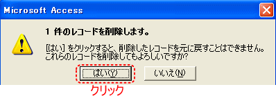 【12】削除のメッセージが表示されたら、「はい」ボタンをクリックします。