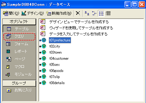 【3】「SampleDB040Conn.mdb」を開きます。