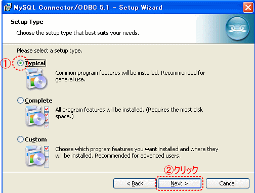 【4】標準でインストールするので「Typical」を選択し、「Next」ボタンをクリックします。