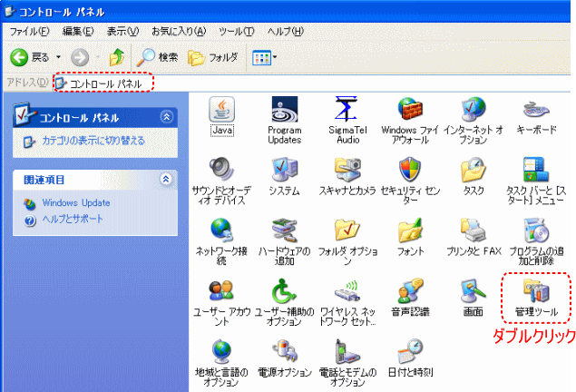【7】コントロールパネルを開き、「管理ツール」をダブルクリックします。