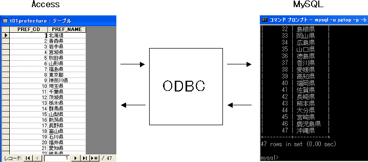 実はMySQLにはODBCドライバが用意されているので、Accessのようなデータベースから簡単に操作することができます。ODBC(Open DataBase Connectivity)とはデータベースにアクセスするためのAPIです。