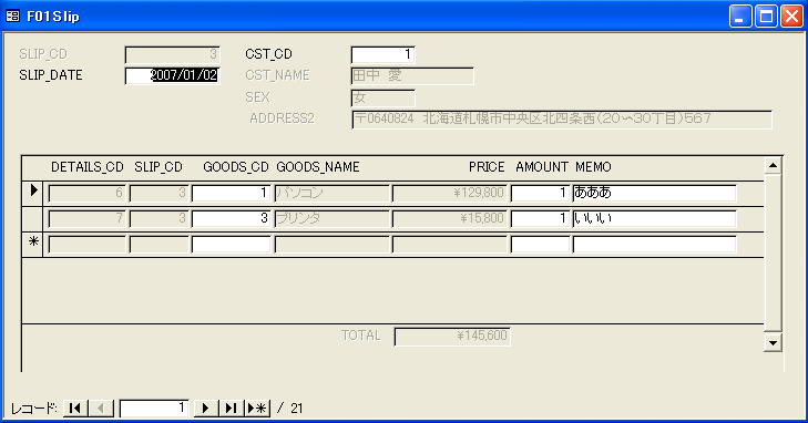 これでAccessからMySQLが操作できるようになりました。あとはAccessのテーブルと同じように扱うことができます。