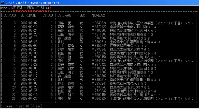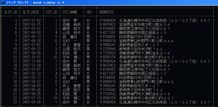 もちろん、追加、更新、削除などの処理は、ちゃんとMySQL側に反映されます。