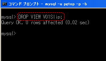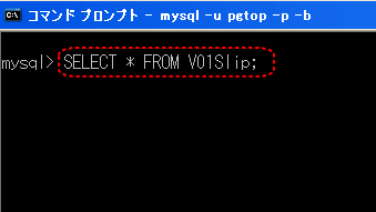 3.「mysql -u pgtop -p -b」と入力し、「Enterキー」を押します。