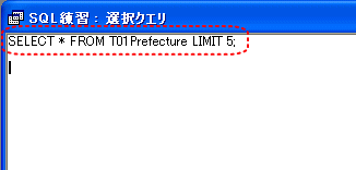 【2】以下のSQL文を入力し、使用するデータベースを選択します。