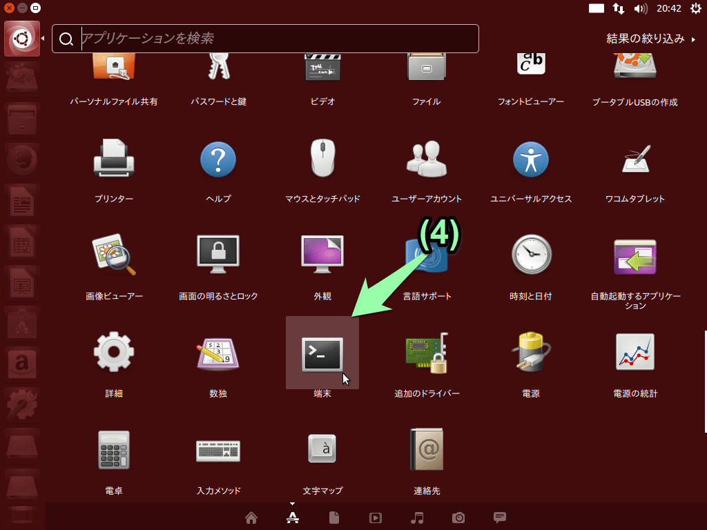 (ここでは、Ubuntu 14.04 のLive DVD を使用したもので解説します。 )
