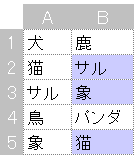 注:"A列とB列の同じ行で、 同じ値のセルに色を付けたい"場合は「A列とB列で値が同じセルに、自動で色をつけたい」を参照してください。