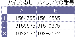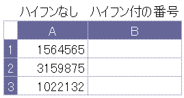 ハイフンなしで入力済の郵便番号を、一括してハイフン付の番号に変換することができます。