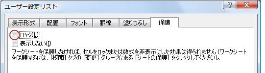 【保護】タブで「ロック」のチェックを外す