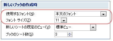 この設定は起動時および、新規作成する全てのブックに反映されます。