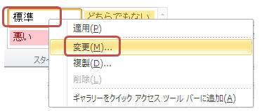 フォント・サイズ・色・配置・塗りつぶし色・罫線等を設定したい場合は↓の操作で「標準スタイル」を変更する