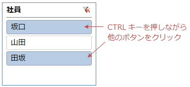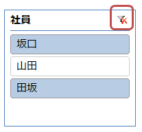 ▼ 1つのスライサーで2つ以上の項目データを抽出したい場合は、CTRLキーを押しながらクリックします 「坂口」と「田坂」のデータが抽出されます。