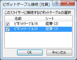 接続するピボットテーブルにチェックを入れ「OK」をクリック