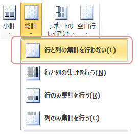 「統計▼」をクリックし「行と列の集計を行わない」をクリック